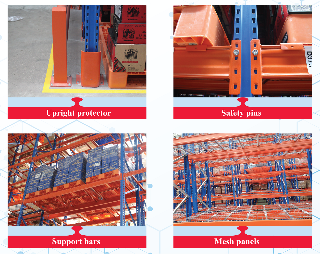 Trang bị cho hệ thống kệ chứa hàng của bạn các thành phần bảo vệ kệ. Tất cả các hệ thống kệ chứa hàng đều có các phụ kiện được khuyến nghị lắp đặt thêm để đảm bảo an toàn cho hệ thống kệ nói chung và cho nhân công làm việc ở trong kho nói riêng. Các phụ kiện bảo vệ gồm có: